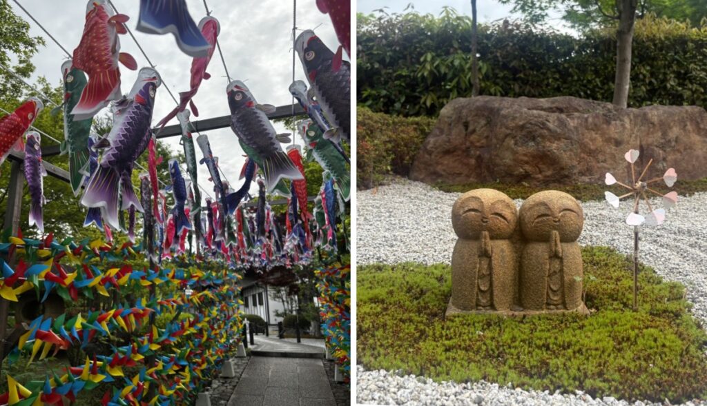 境内に入ると、まず目に入るのは色とりどりの風車や鯉のぼり。