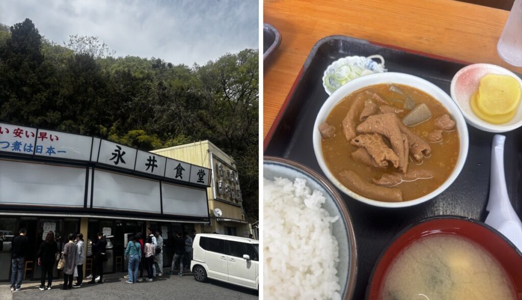 お昼に立ち寄ったのは、大人気のもつ煮のお店「永井食堂」。