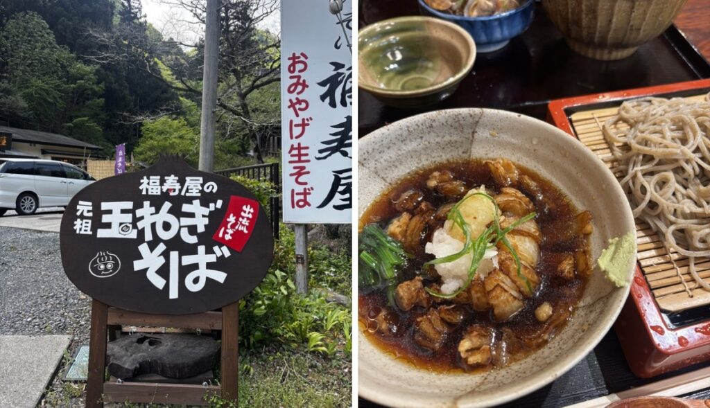 門前には何軒かお蕎麦屋さんが並んでいて、どこに入るか少し迷ったけれど、玉ねぎそばの看板に惹かれてこちらのお店へ。