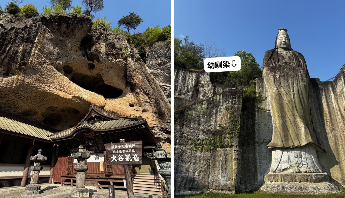 大谷寺のご本尊であるこの千手観音は、日本最古の石仏といわれていて、弘法大師(空海)がこの地を訪れた際に、岩に刻んだと言われています。